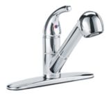 Danze plymouth 1 handle pull out kitchen faucet fits 1 or 3 hole sinks with a 8 center dual function pull out wand with stream and spray function.